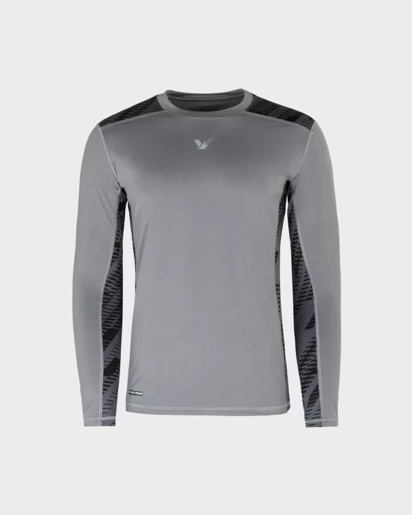 سابلیمیشن نیز طراحی به روز و زیبایی به رنگ طوسی این مدل بلوز استین بلند ورزشی مردانه میبخشد.